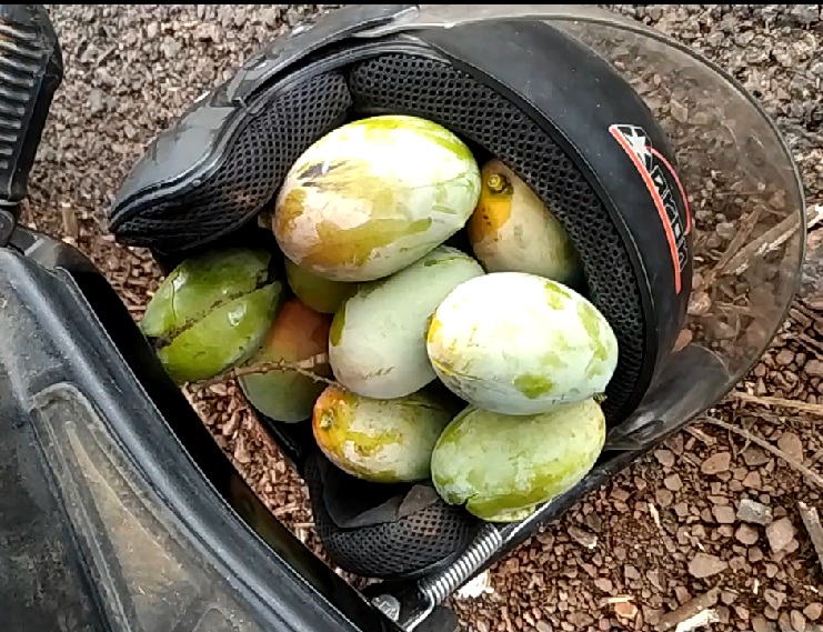 As we were near the Dapoli and its only 5:30 pm while driving we saw a tree full of mangoes so, we stop to pluck some.
